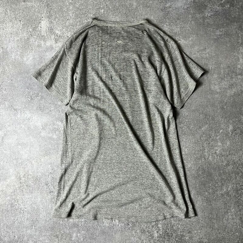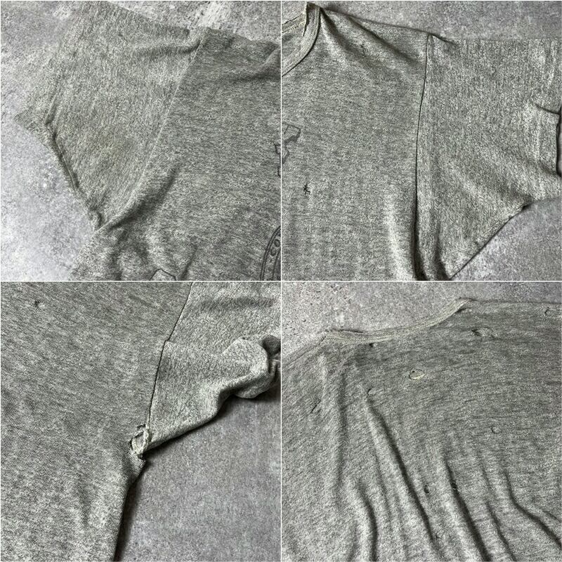 雰囲気系 60s 70s USA製 Champion 3段 カレッジ プリント 半袖 Tシャツ / 60年代 70年代 チャンピオン ビンテージ 霜降り グレー 襤褸 ボロ