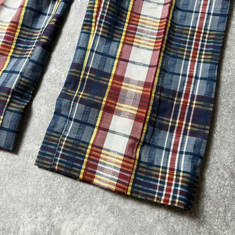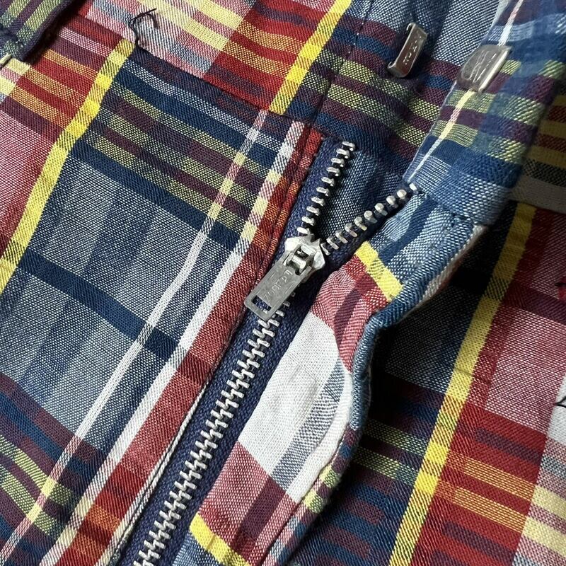 60s 70s UNKNOWN チェック アルミジップ コットン スラックス パンツ / 60年代 70年代 ビンテージ トラウザー マルチカラー
