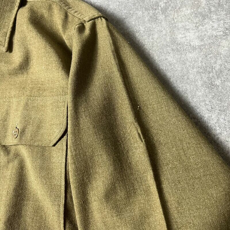 40s 米軍実物 US ARMY マチ付き 長袖 ウール マスタード シャツ 15 1/2 / 40年代 ビンテージ ミリタリー アーミー ガスフラップ