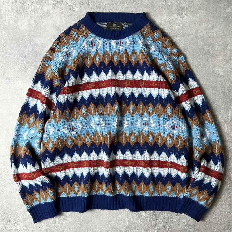 70s PURITAN フェアアイル 総柄 アクリル ニット セーター XL / 70年代 ピューリタン ビンテージ マルチカラー ノルディック
