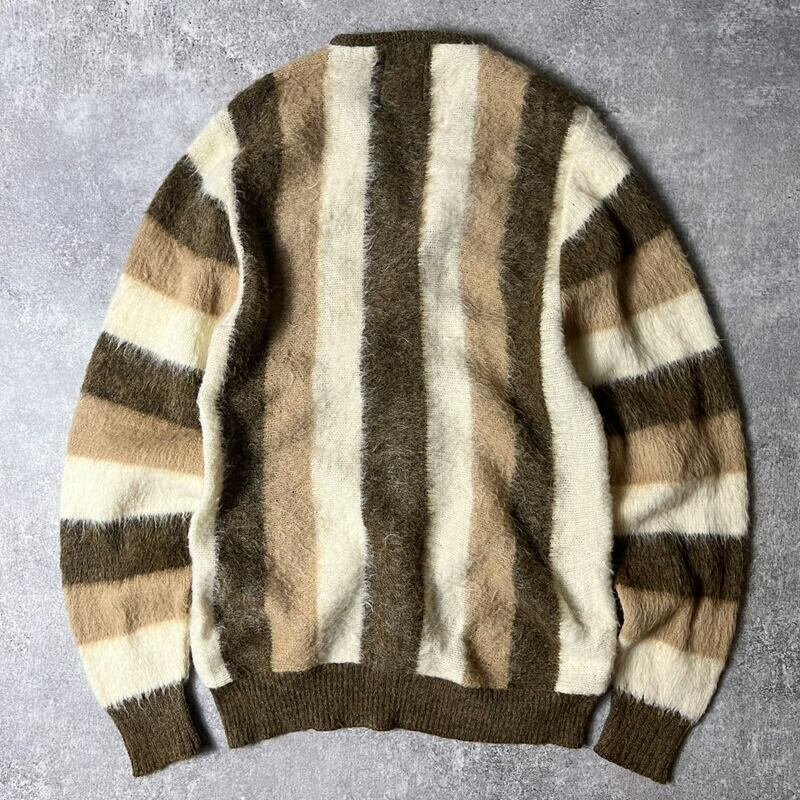 60s Masterpiece by ARENA ストライプ 25% モヘア ニット カーディガン S / 60年代 ビンテージ セーター グランジ 毛長 マルチカラー