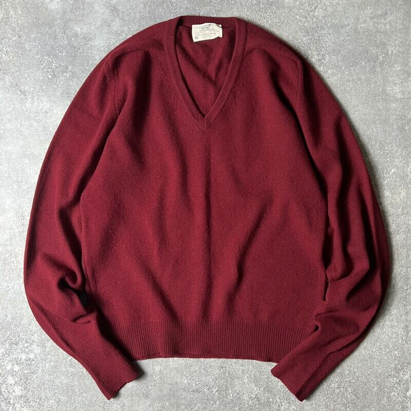 80s USA製 LORD JEFF ラムウール ニット セーター M / 80年代 アメリカ製 ビンテージ ワイン レッド 無地 Vネック