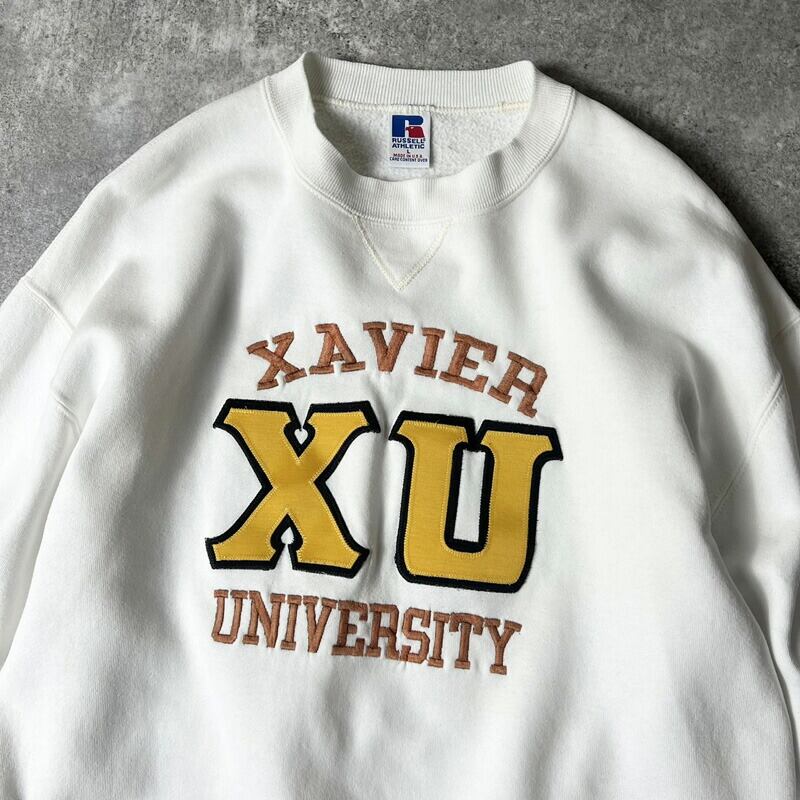 90s USA製 RUSSELL 3段 カレッジ プリント スウェット トレーナー L / 90年代 アメリカ製 オールド ラッセル ホワイト