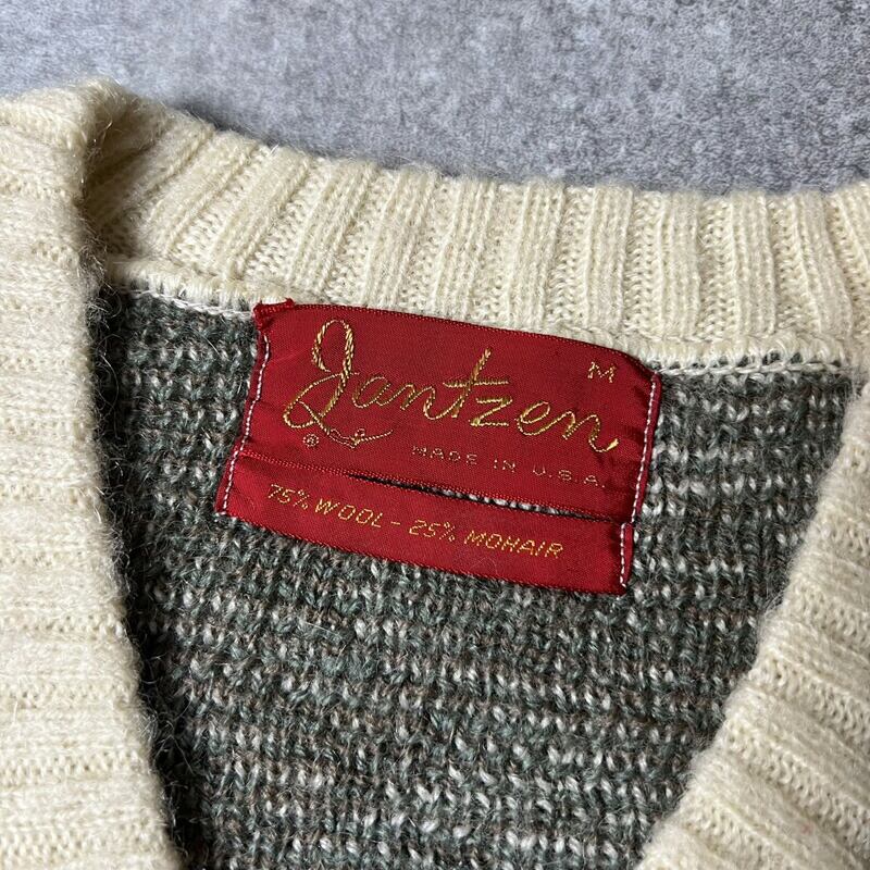 60s USA製 Jantzen アーガイル 総柄 25% モヘア ウール Vネック ニット セーター M / 60年代 アメリカ製 ビンテージ ジャンセン モヘヤ