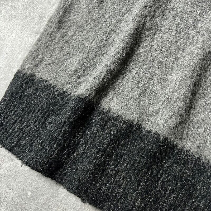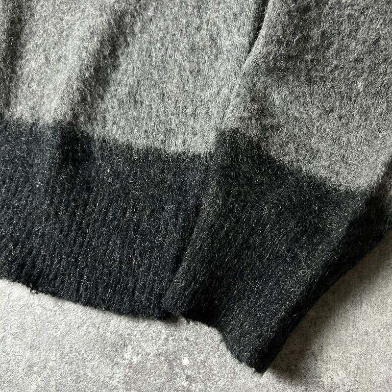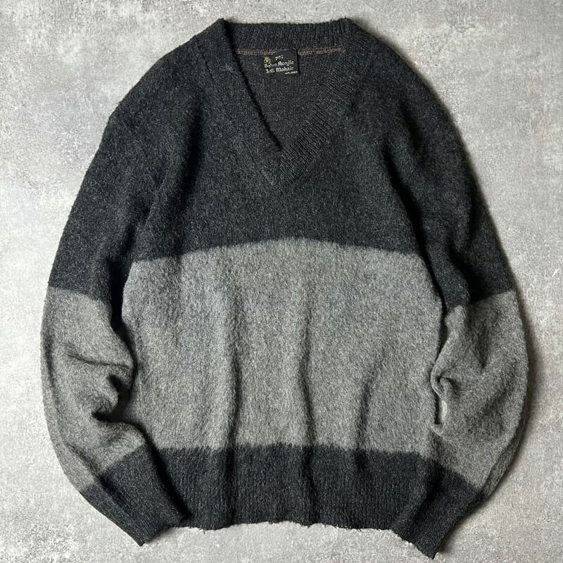 60s UNKNOWN 2トーン 切替 30% モヘア アクリル Vネック ニット セーター / 60年代 ビンテージ モヘヤ モノトーン
