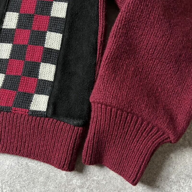 前身頃はスエードレザーとブロックチェックの切替デザイン