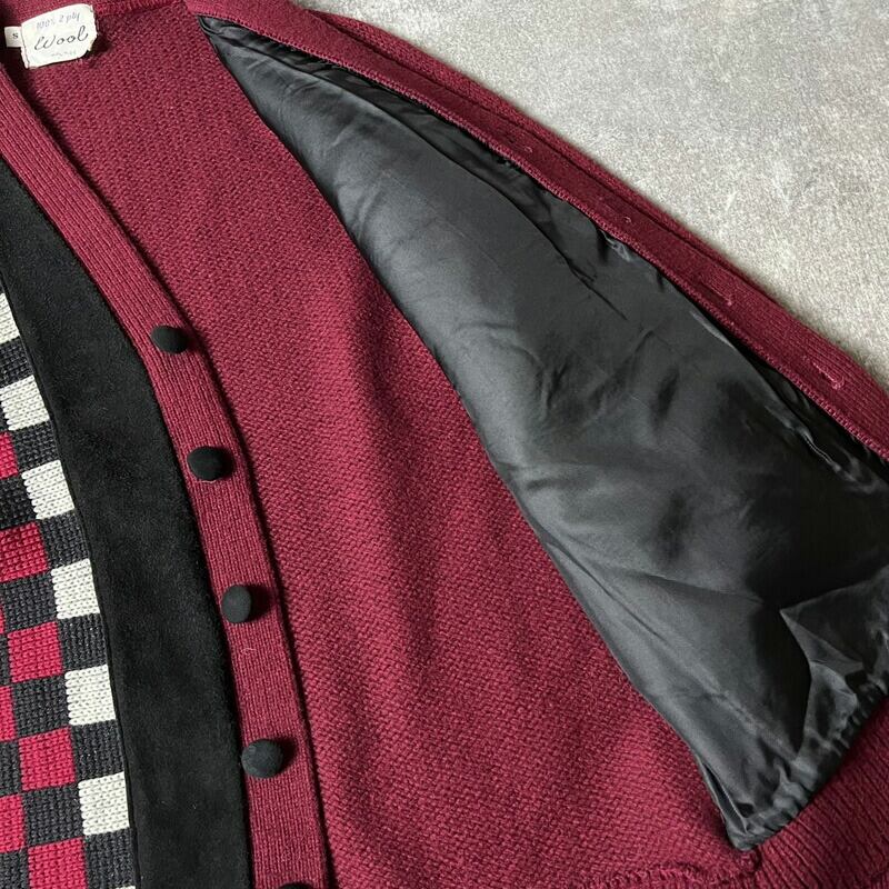 60s GLORAY KNITTING MILLS スエード 切替 ウール ニット カーディガン S / 60年代 ビンテージ セーター マルチカラー