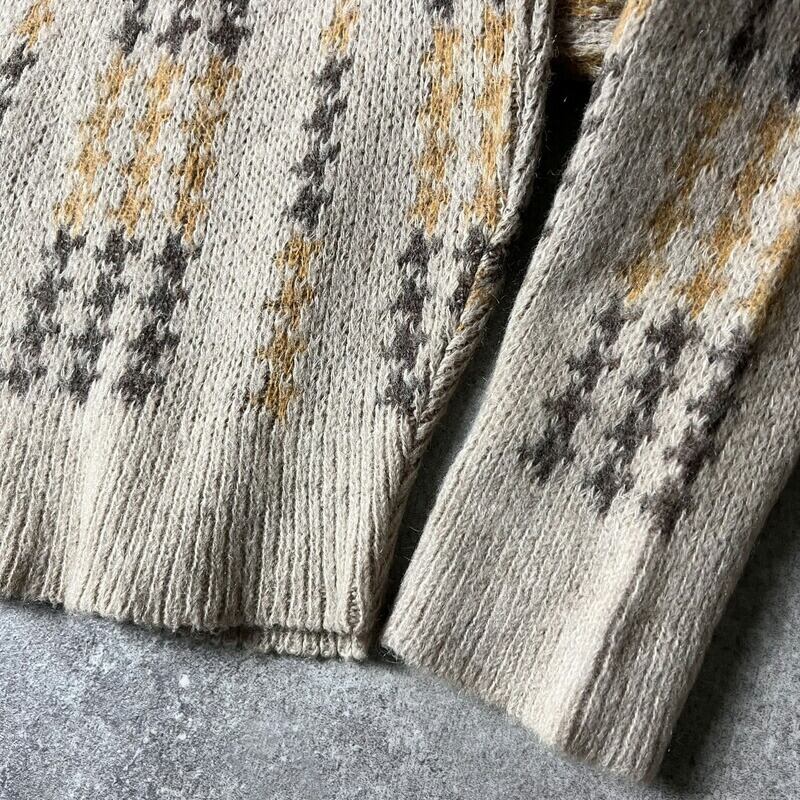 60s RUGBY SPORTSWEAR ストライプ 総柄 Vネック 25% モヘア ラムウール ニット セーター / 60年代 ビンテージ ベージュ