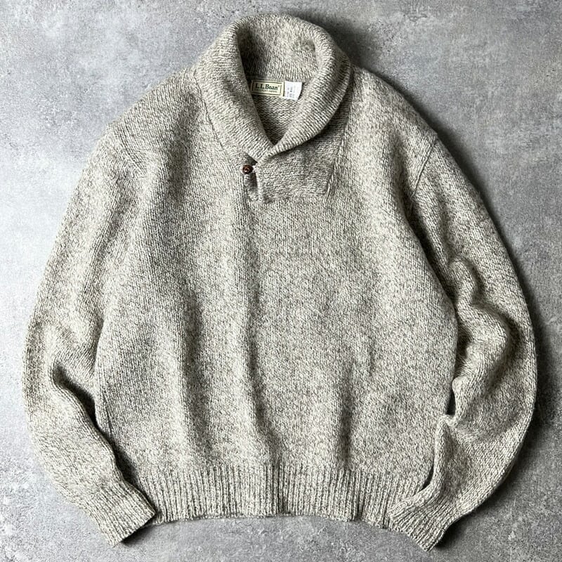 80s LLBean ショールカラー ウール ニット セーター XL / 80年代 ビンテージ エルエルビーン 霜降り ベージュ
