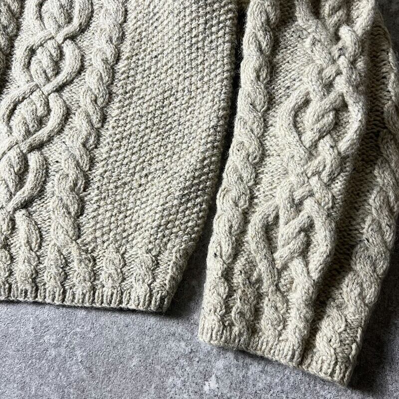 温もりのあるフィッシャーマンニットデザインです。