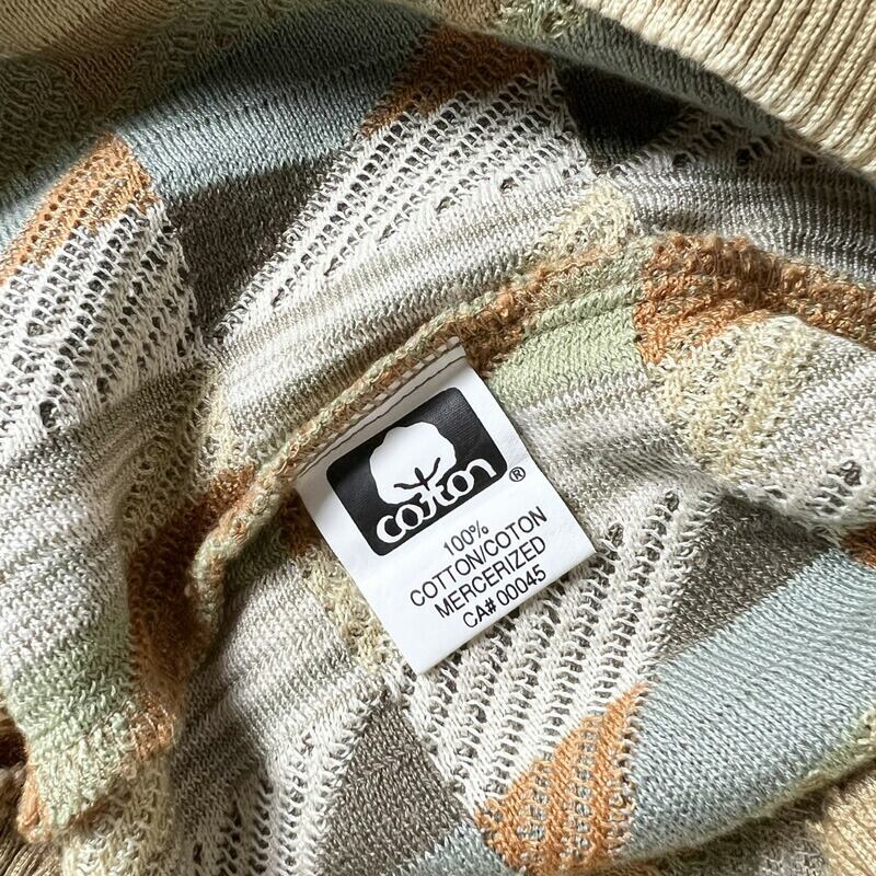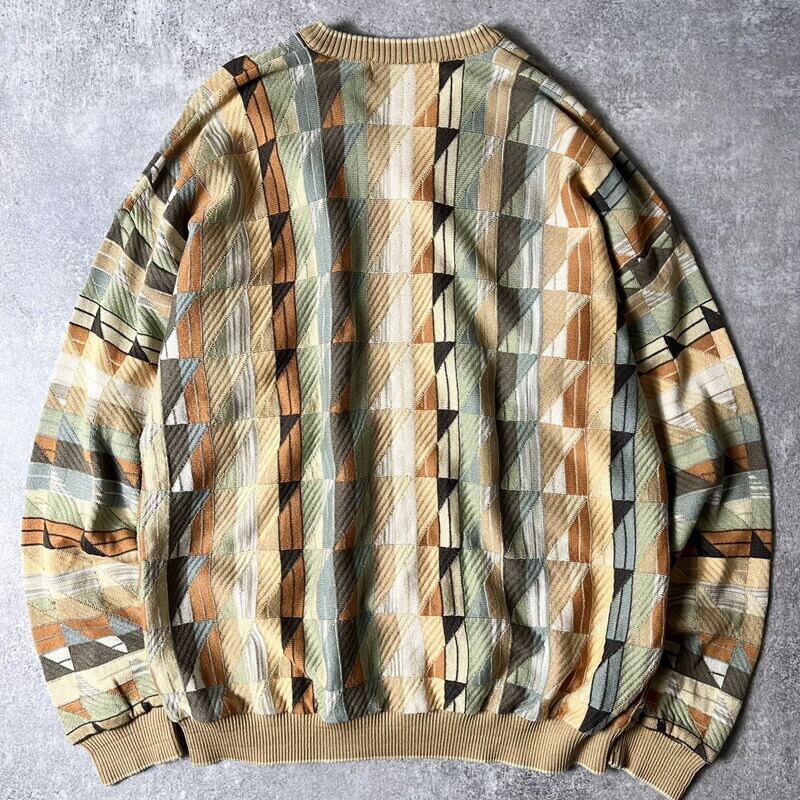 90s カナダ製 TUNDRA Vネック 総柄 コットン ニット セーター L / 90年代 オールド マルチカラー タンドラ 3D