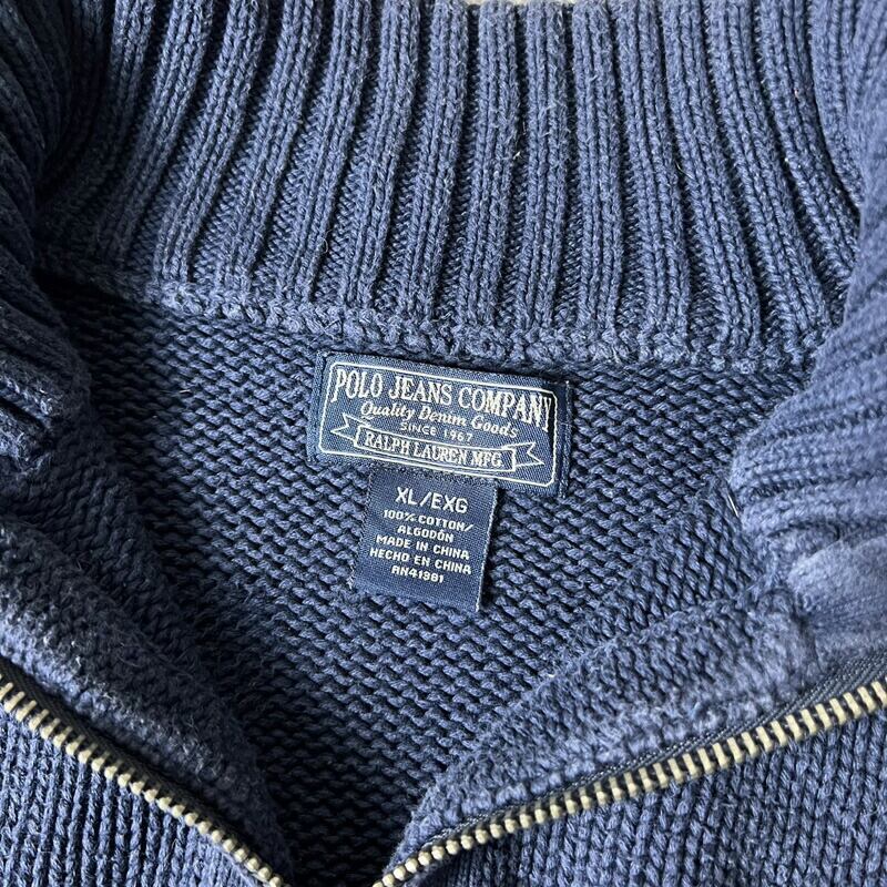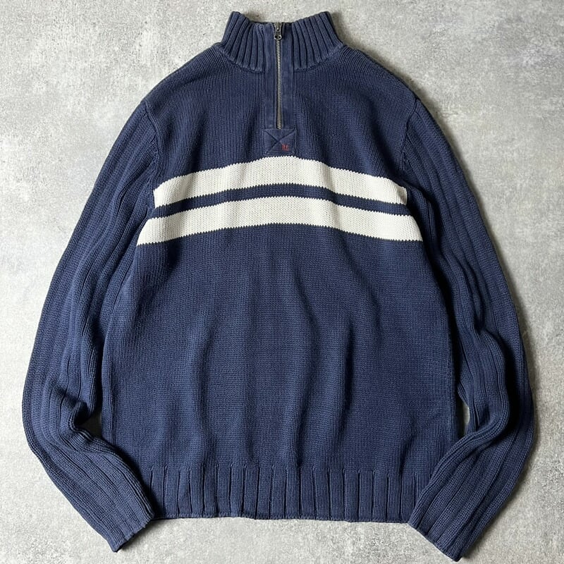 90s POLO JEANS CO ハーフジップ コットン ニット セーター XL / 90年代 オールド ポロ ラルフローレン ボーダー