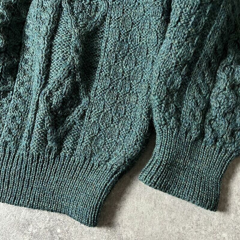 アイルランド製 aran crafts ウール フィッシャーマン ニット セーター XL / アランクラフト アラン グリーン 無地