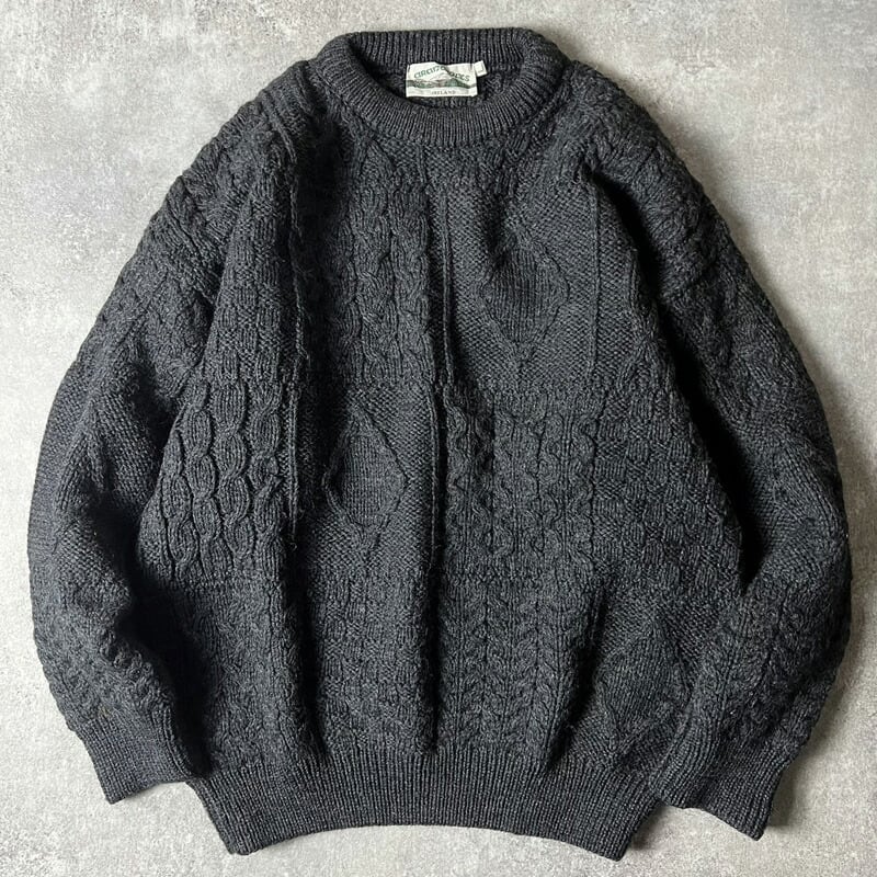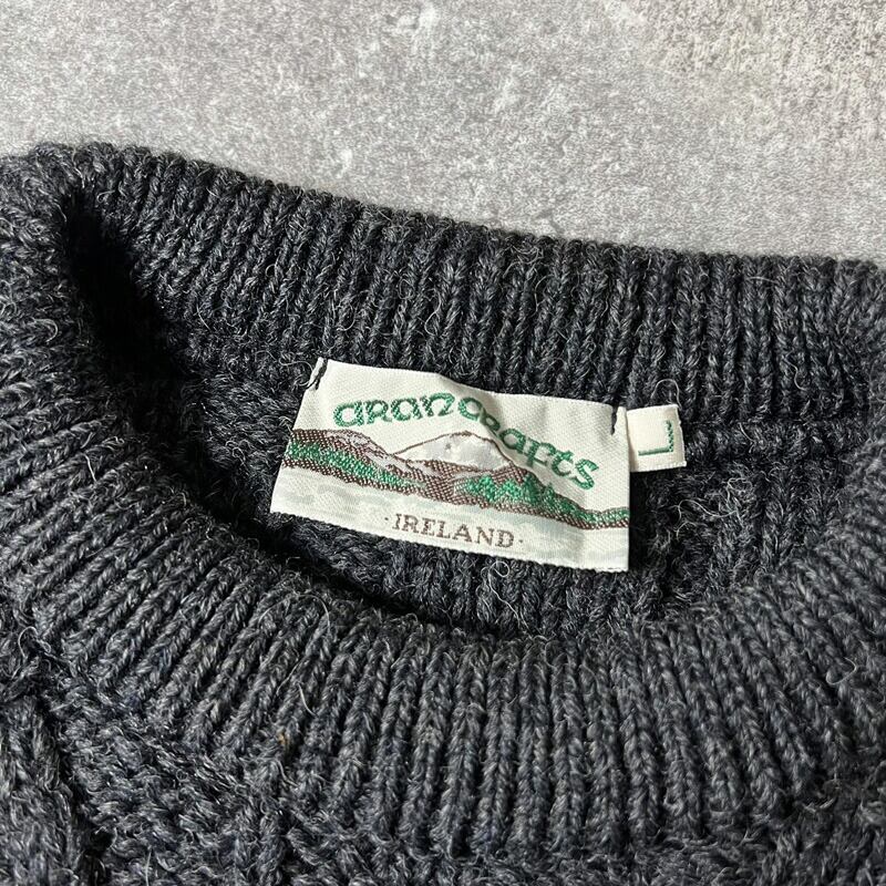 アイルランド製 aran crafts ウール フィッシャーマン ニット セーター L / アランクラフト アラン チャコール グレー