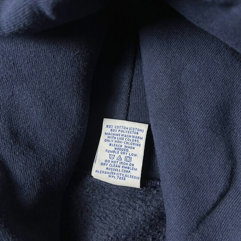 90s RUSSELL カレッジ ロゴ 刺繍 スウェット フード パーカー XL / 90年代 オールド ラッセル ネイビー トレーナー