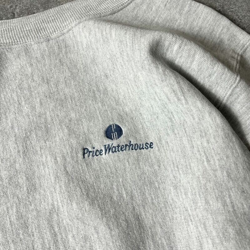 90s トリコタグ Champion 企業 ロゴ 刺繍 リバースウィーブ スウェット トレーナー / 90年代 オールド チャンピオン 霜降り グレー