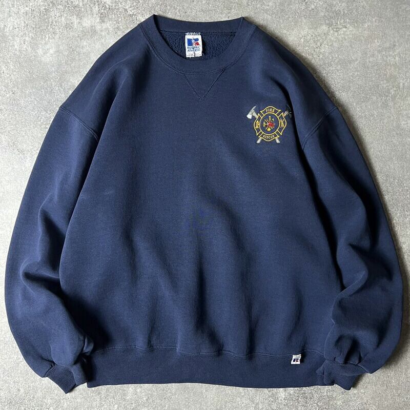 90s USA製 RUSSELL ロゴ 刺繍 スウェット トレーナー L / 90年代 アメリカ製 オールド ラッセル ネイビー