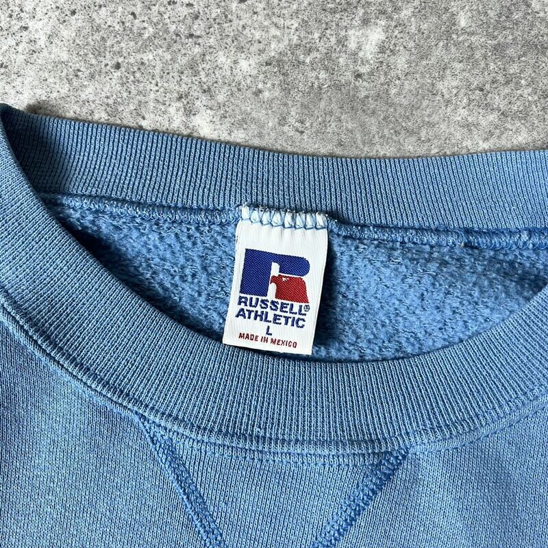 90s RUSSELL 3段 カレッジ ロゴ 刺繍 スウェット トレーナー L / 90年代 オールド ラッセル ブルー スエット