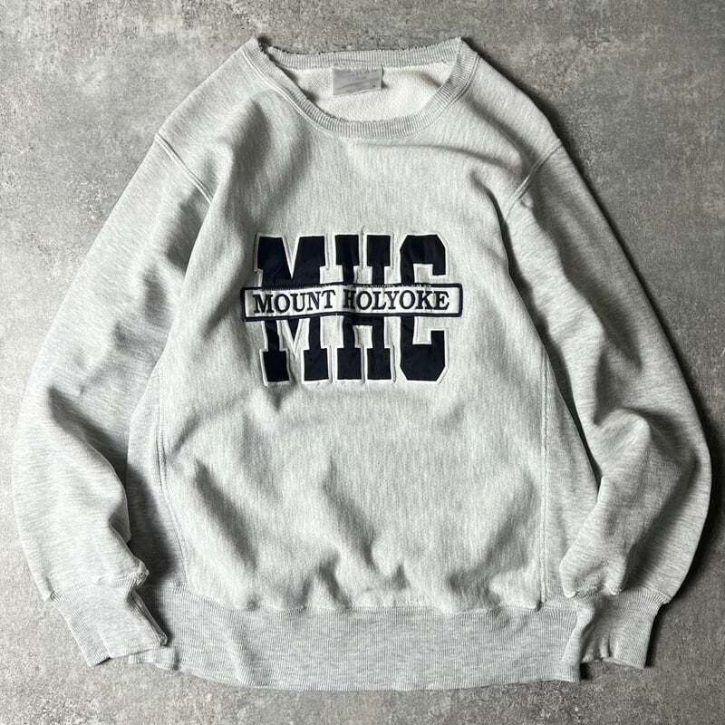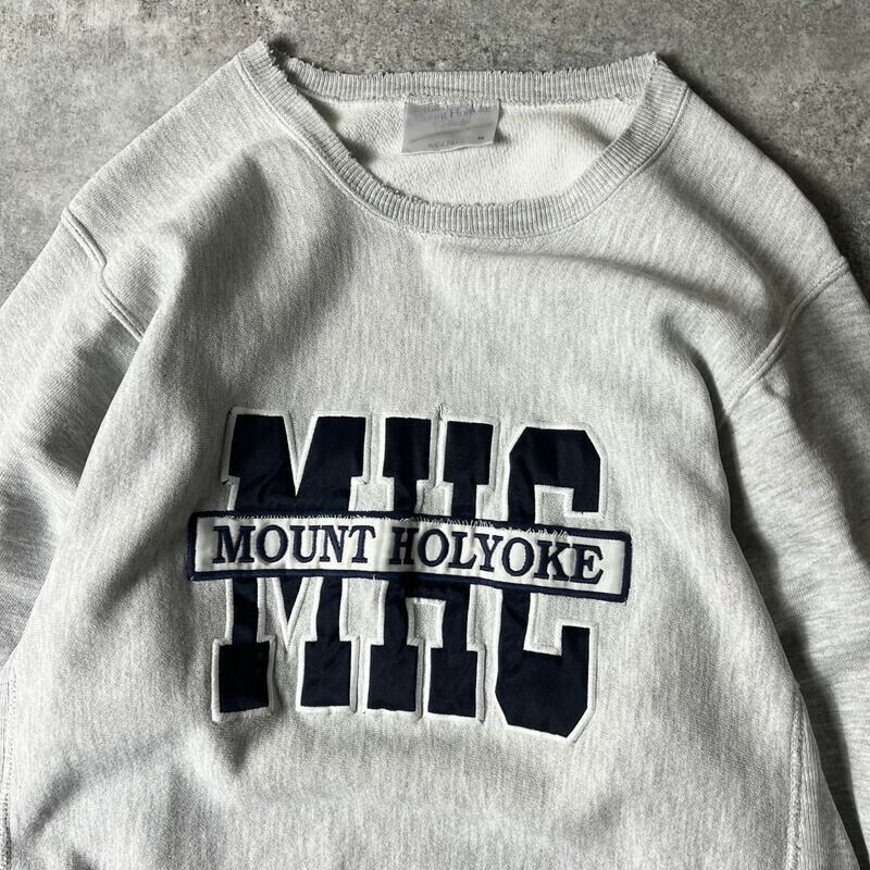 雰囲気系 90s USA製 カレッジ パッチ 刺繍 RWタイプ スウェット トレーナー M / 90年代 アメリカ製 オールド リバース 霜降り グレー