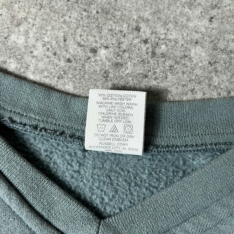 90s USA製 RUSSELL 無地 Vネック スウェット トレーナー L / 90年代 アメリカ製 オールド ラッセル 裏起毛 グリーン
