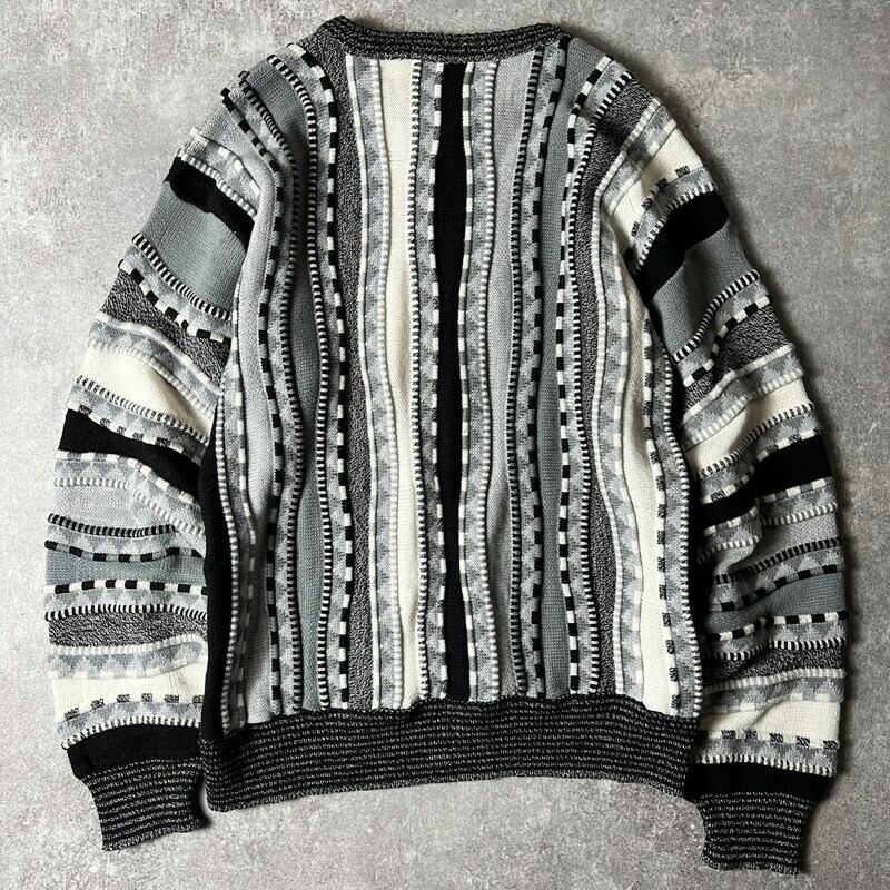 90s USA製 CAMPUS 総柄 3D 立体編み アクリル ニット セーター M / 90年代 アメリカ製 オールド マルチカラー キャンパス