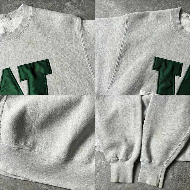 90s UNKNOWN カレッジ ロゴ パッチ 刺繍 RWタイプ スウェット トレーナー / 90年代 オールド リバース 霜降り グレー