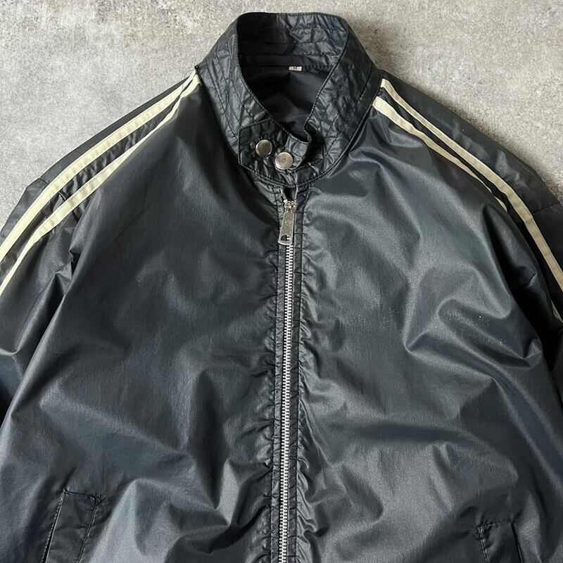 70s 80s UNKNOWN フルジップ ナイロン レーシング ジャケット M / 70年代 80年代 ビンテージ ライン ブラック 黒