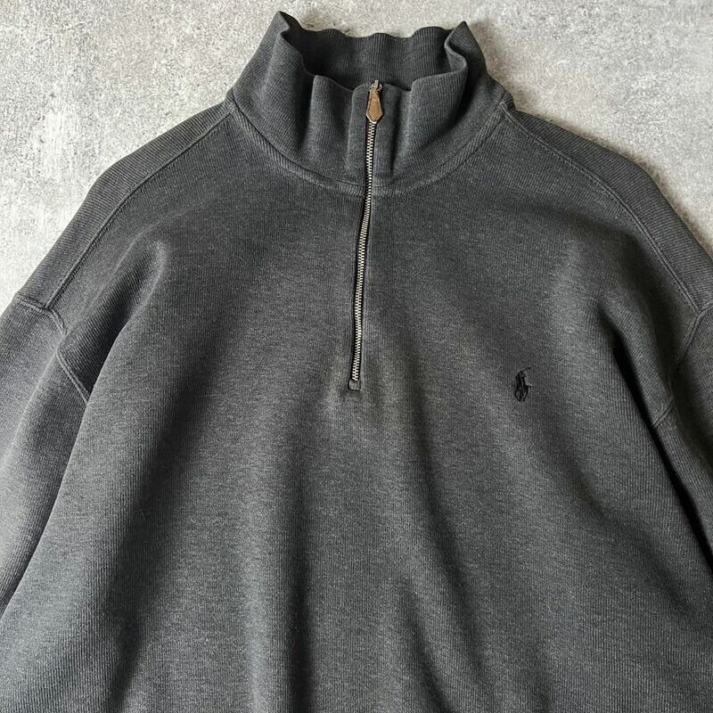 90s POLO RALPH LAUREN ハーフジップ プルオーバー リブ編み トレーナー XL / 90年代 ポロ ラルフローレン スウェット