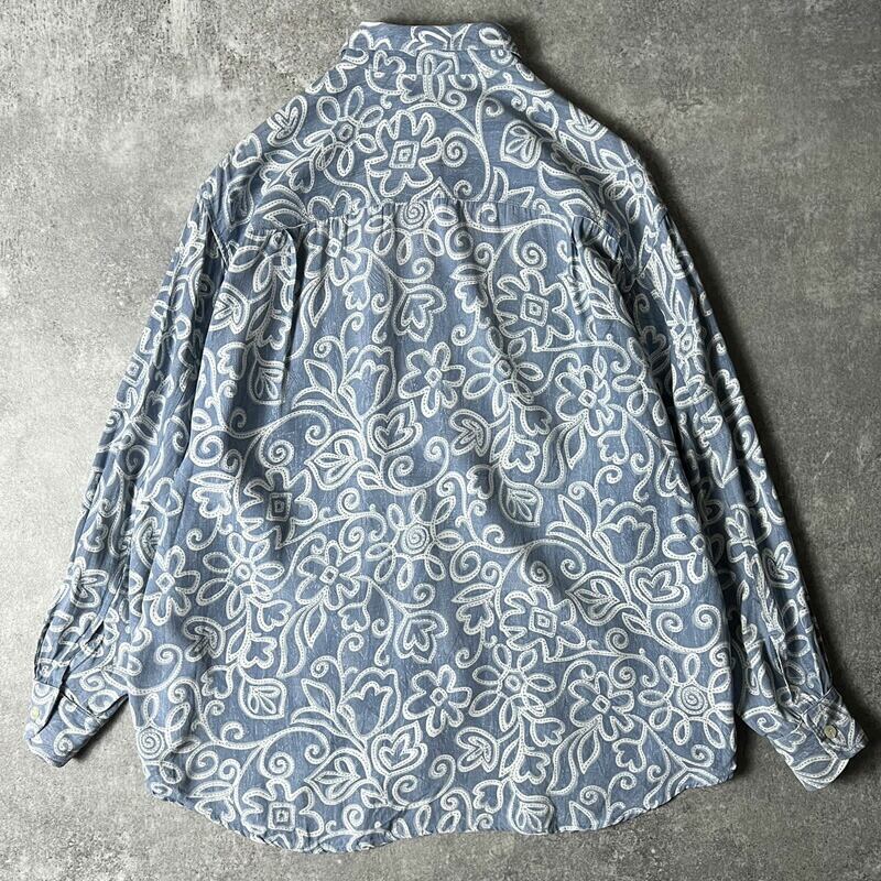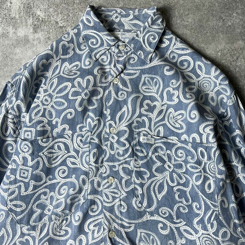 90s USA製 GUESS GEORGES MARCIANO 総柄 長袖 レーヨン シャツ M / 90年代 アメリカ製 オールド ゲス マルシアーノ