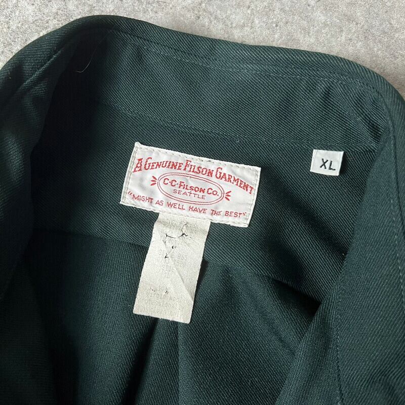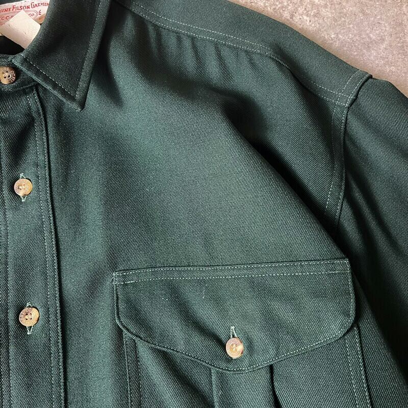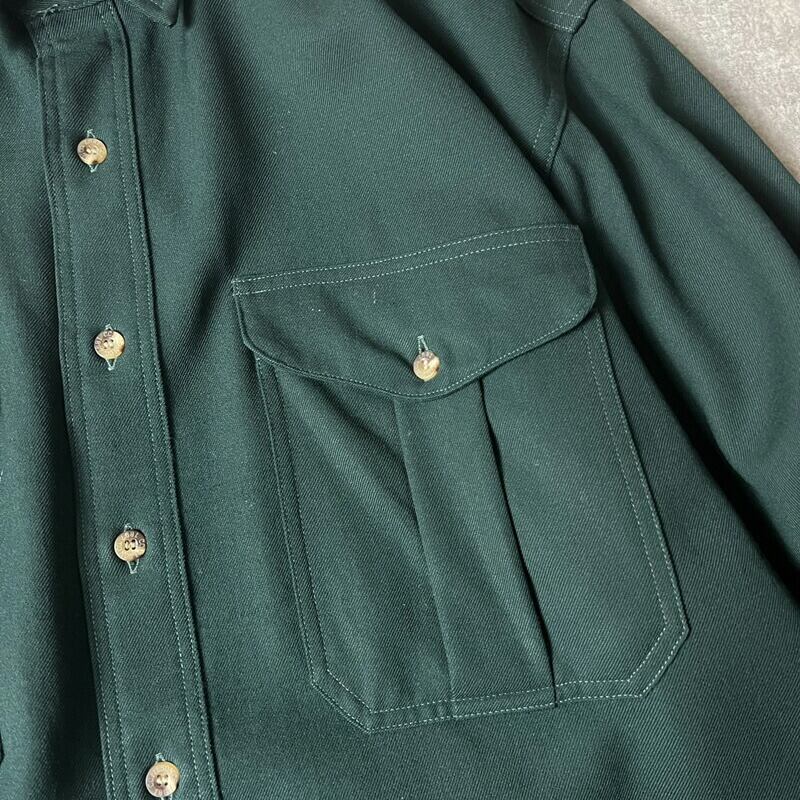 USA製 FILSON 無地 長袖 ウール ギャバジン シャツ XL / アメリカ製 ビンテージ フィルソン ダーク グリーン