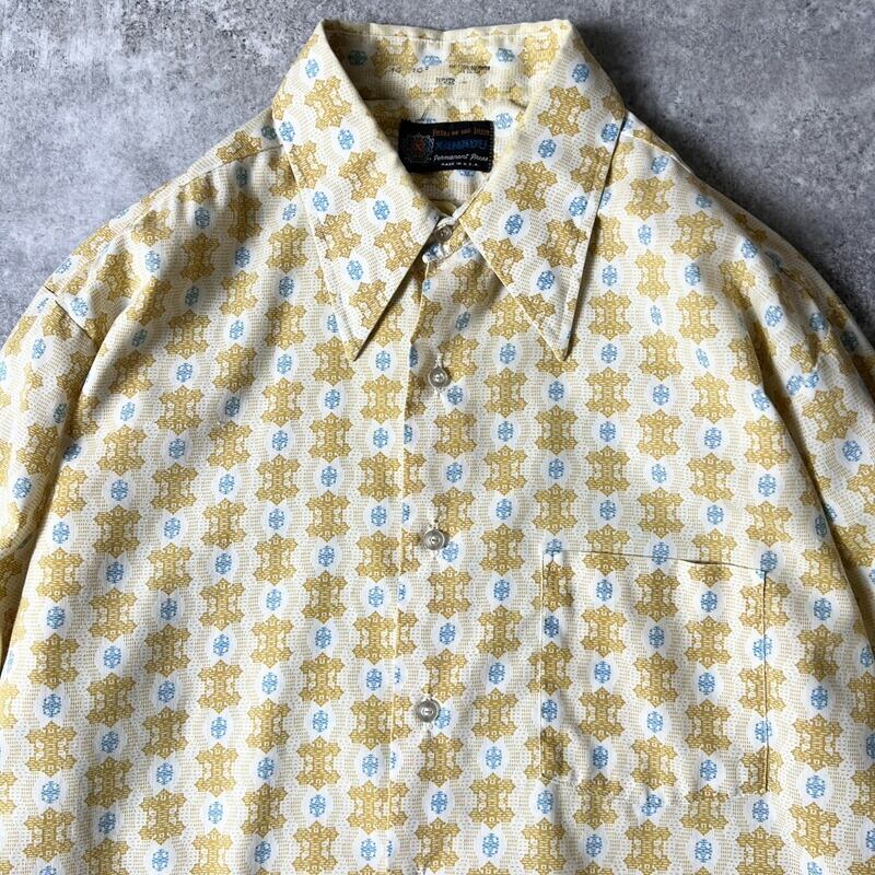 70s USA製 FRUIT OF THE LOOM XANADU 総柄 長袖 シャツ 16 1/2 / 70年代 アメリカ製 ビンテージ フルーツオブザルーム マルチカラー