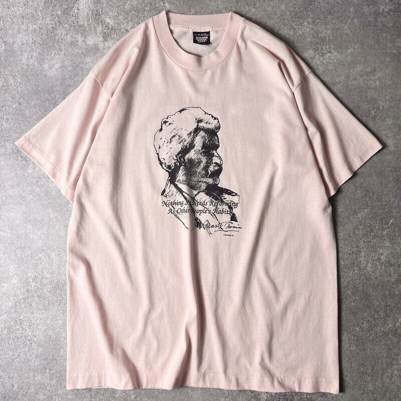 80s USA製 マーク トウェイン プリント 半袖 Tシャツ XL / 80年代 ビンテージ アメリカ製 ピンク シングル ステッチ Mark Twain