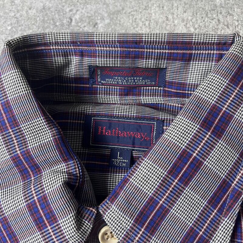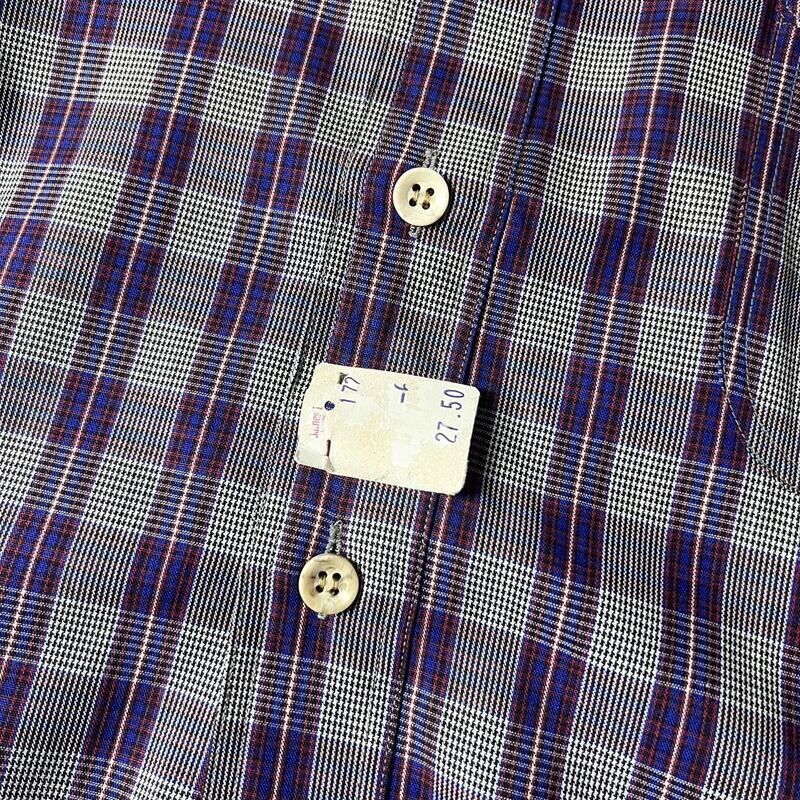 デッドストック 70s Hathaway チェック 長袖 コットン シャツ L / 70年代 ビンテージ ボックス ハサウェイ NOS