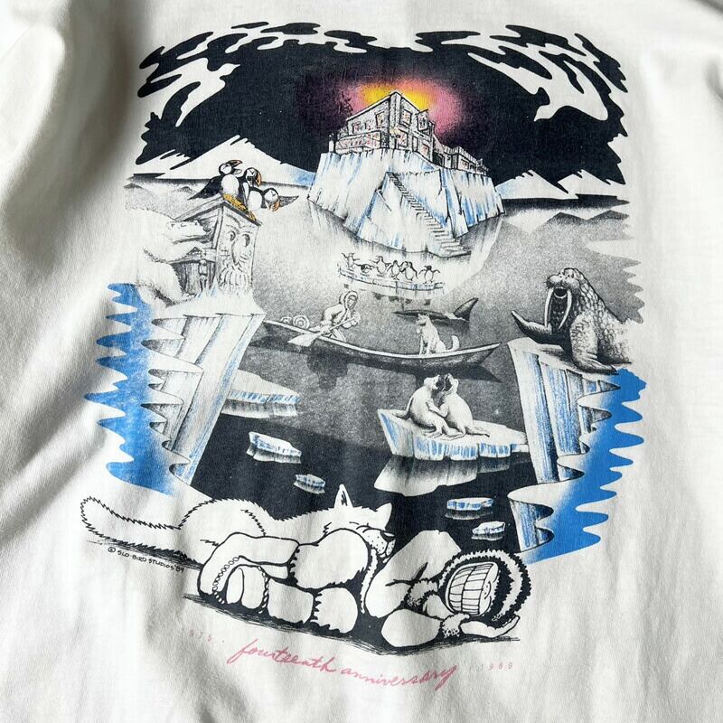 笑顔のエスキモー ジョーとよだれを垂らす犬の友人バフィーのロゴはグッズ販売されるなど人気の高いデザインです。