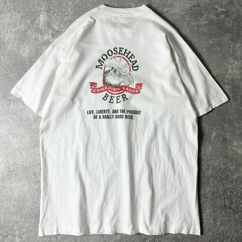 90s USA製 MOOSEHEAD BEER 企業 ロゴ 両面 プリント 半袖 Tシャツ XL / 90年代 アメリカ製 オールド シングル ビール 企業物