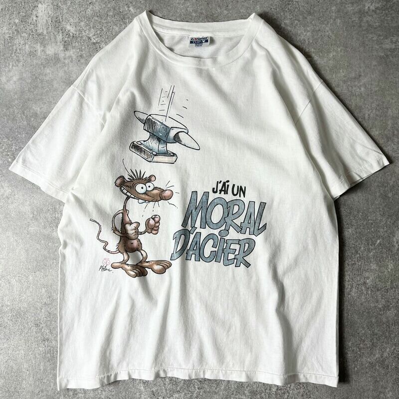 80s USA製 ネズミ アニマル キャラクター プリント 半袖 Tシャツ L / 80年代 ビンテージ キャラ シングル ステッチ ホワイト