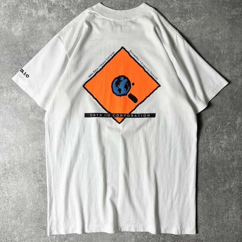 90s USA製 DATA I/O 両面 企業 ロゴ プリント 半袖 Tシャツ L / 90年代 アメリカ製 オールド 企業物 シングル