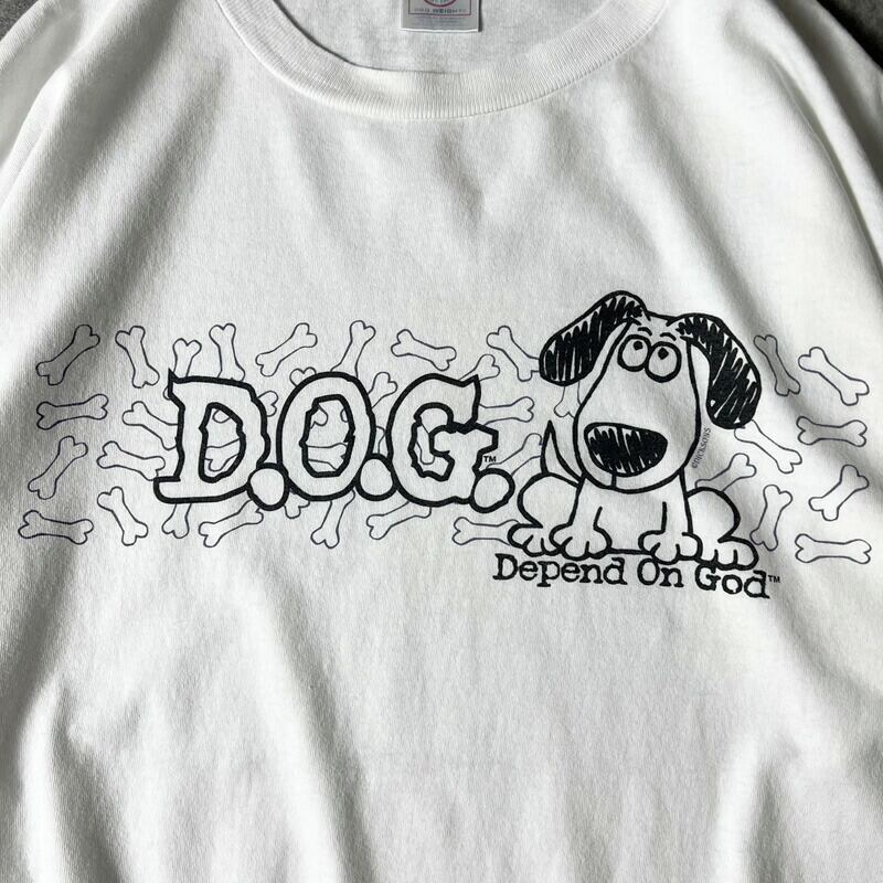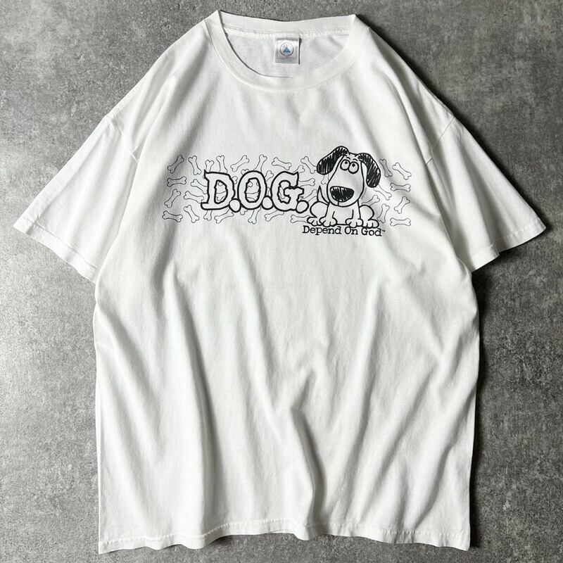 00s DOG キャラクター プリント 半袖 Tシャツ L / 00年代 オールド ホワイト 白 犬 ドッグ