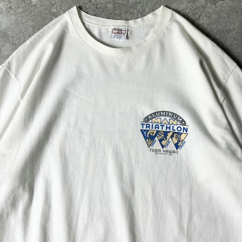 90s USA製 Crazy Shirt トライアスロン プリント 半袖 Tシャツ XL / 90年代 アメリカ製 オールド シングル ホワイト