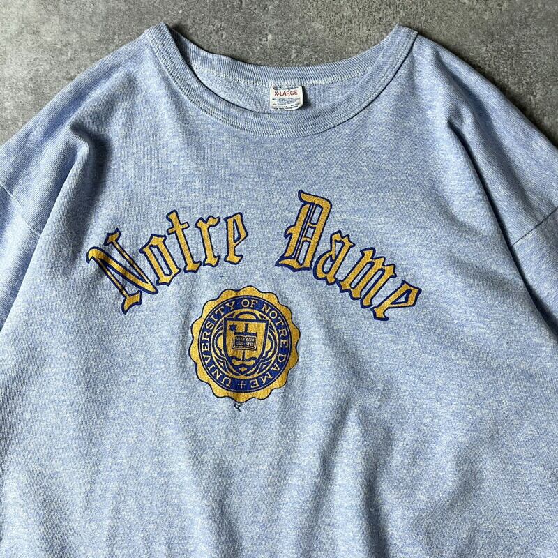 80s USA製 Champion 88/12 2段 カレッジ プリント 半袖 Tシャツ XL / 80年代 アメリカ製 チャンピオン ビンテージ 霜降り ブルー