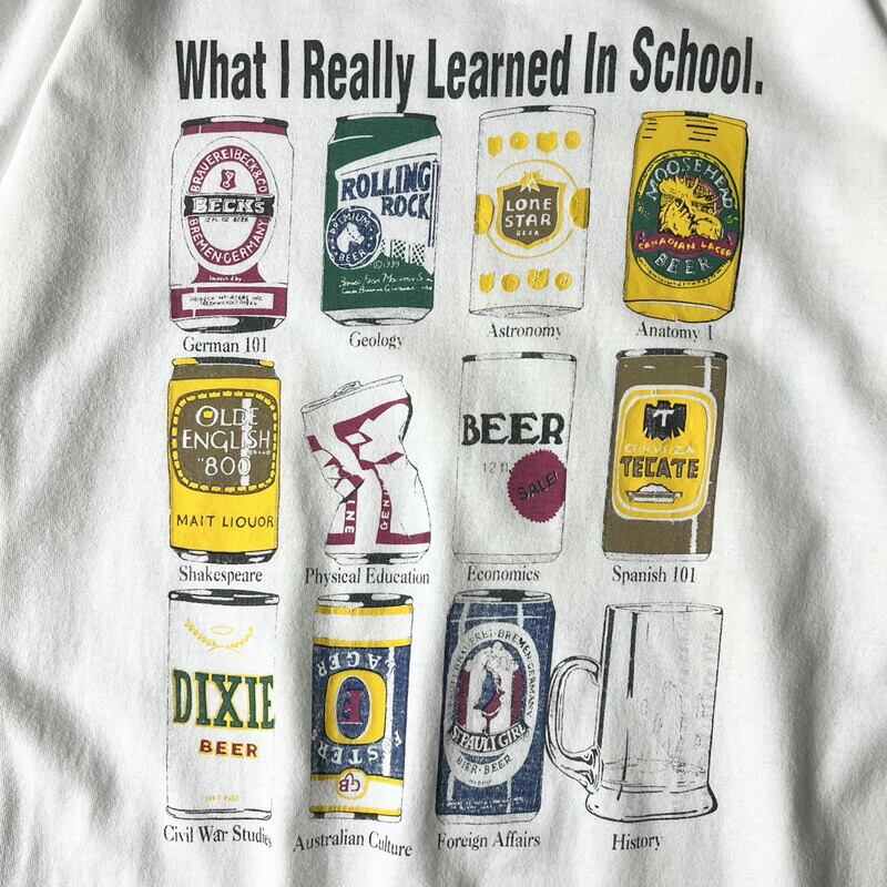 90s ビール ジョーク アート プリント 半袖 Tシャツ XL / 90年代 オールド シングル ステッチ ホワイト 白