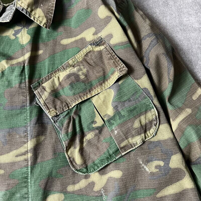 70s US ARMY 米軍実物 4th ERDL グリーンリーフ カモ ジャングルファティーグ ジャケット M-R / 70年代 ビンテージ ミリタリー USMC