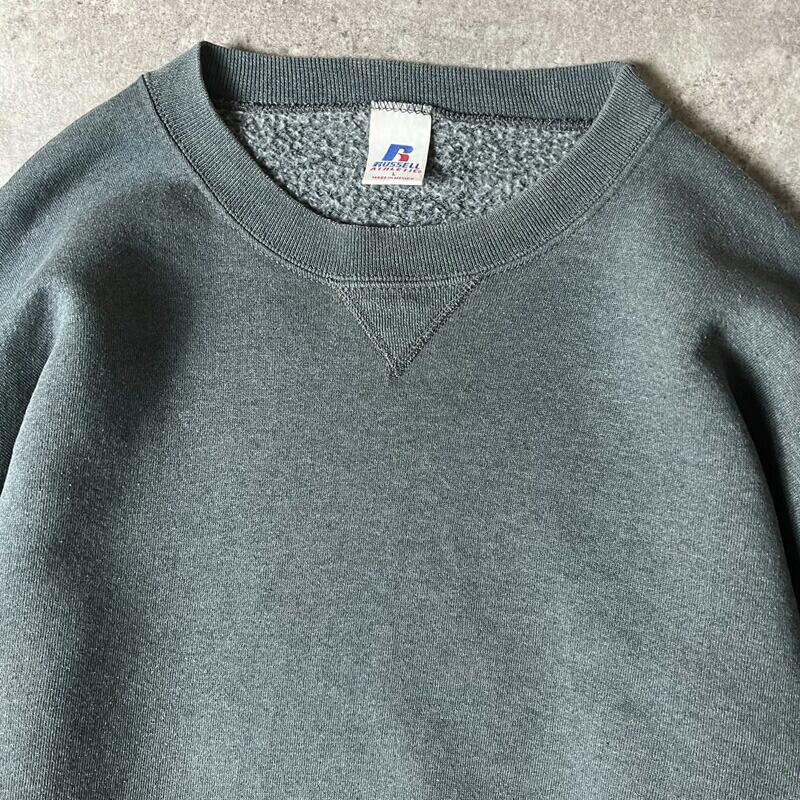 レアカラー 00s RUSSELL 無地 前V スウェット トレーナー L / 00年代 オールド ラッセル 裏起毛 グリーン スエット