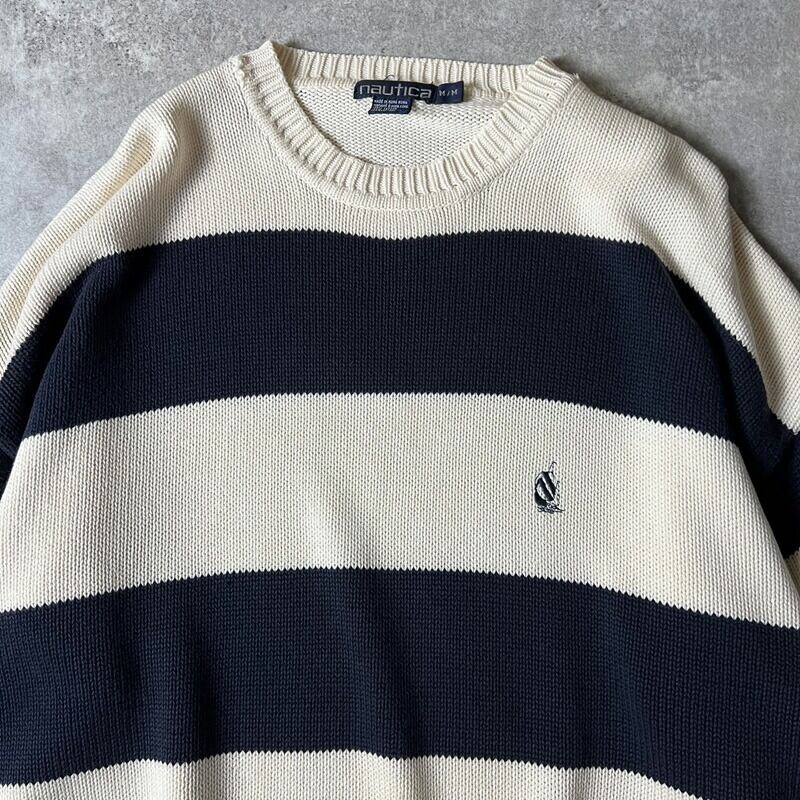 90s nautica 2トーン ボーダー コットン ニット セーター M / 90年代 オールド ノーティカ ネイビー ナチュラル