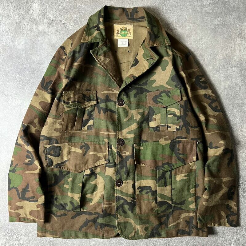 70s IDEAL ブラウンリーフ カモ 迷彩 コットン ピケ ハンティング ジャケット L / 70年代 ビンテージ 迷彩柄 カモ柄 リーフカモ