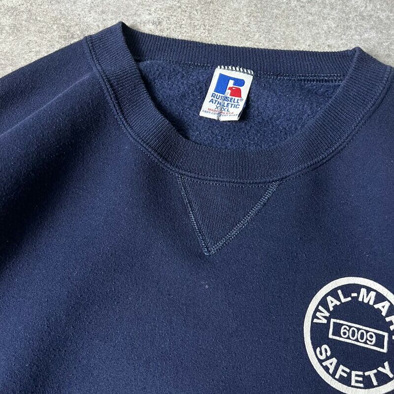 90s USA製 RUSSELL 企業 ロゴ プリント 前V スウェット トレーナー XXL / 90年代 アメリカ製 オールド ラッセル ウォルマート