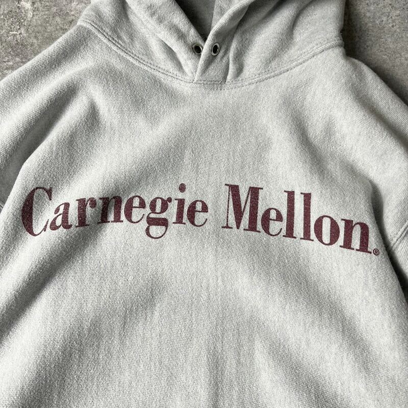 00s Champion カレッジ プリント オリジナル リバースウィーブ スウェット フード パーカー M / 00年代 オールド チャンピオン グレー