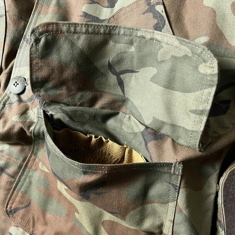 ファッションに落とし込みやすいことから、迷彩柄の中でも人気の高いリーフカモの一枚です。