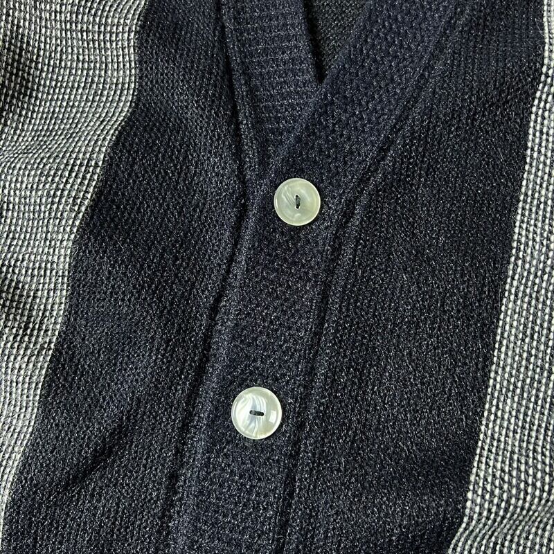 60s Cooper Knitting モノトーン 切替 アクリル ニット カーディガン L / 60年代 ビンテージ セーター ポケット付き 黒 白