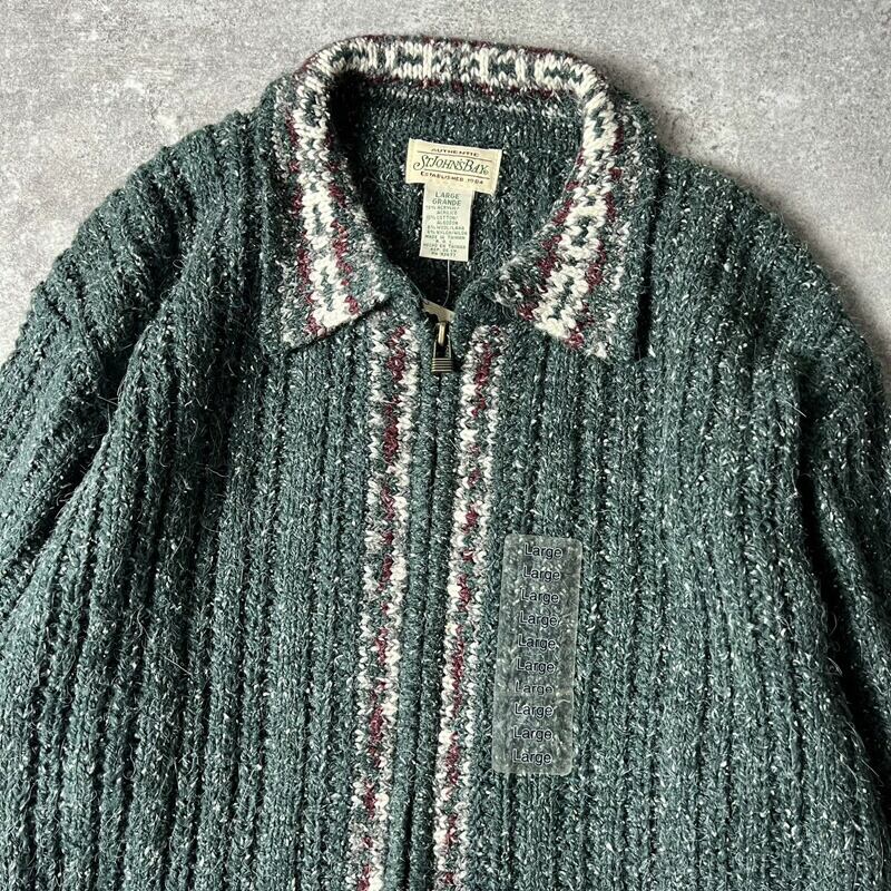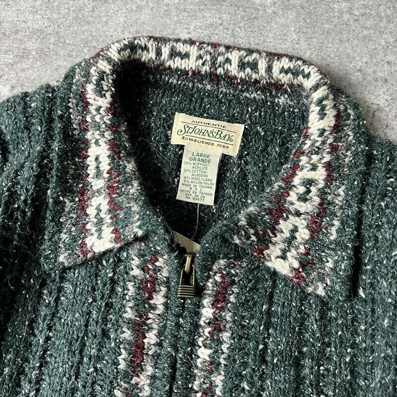 デッドストック 90s ST JOHN'S BAY 襟付き フルジップ ニット カーディガン L / 90年代 オールド JCPenney JCペニー セーター NOS